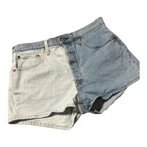 Levis 501 Original Two Toned Denim Hidden Button Front Stretch Jean Shorts 32