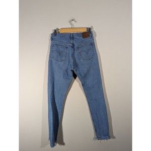 Levi's 501 Premium Denim Blue Mid Rise Raw Hem Skinny Jeans Women Size 27