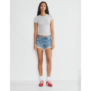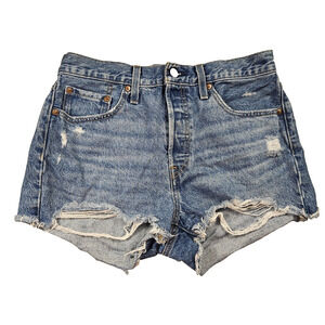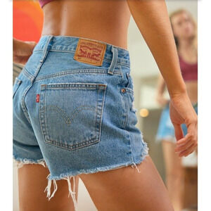 Levis 501 Premium Denim Women Short BIG E Button Fly High Rise Raw Hem Cutoff 28