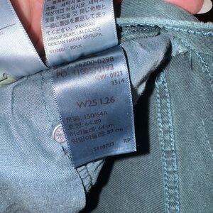 Levi’s 501 Premium Original Fit Button Fly Jeans Green Gray Distressed Hem