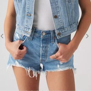 Levi’s 501 Premium Original Fit High Rise Blue Denim Shorts Raw hem size 30