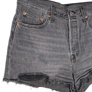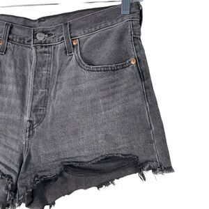 Levi’s 501 Premium Quality Black Raw Hem High Waist Denim Jean Shorts Size 31