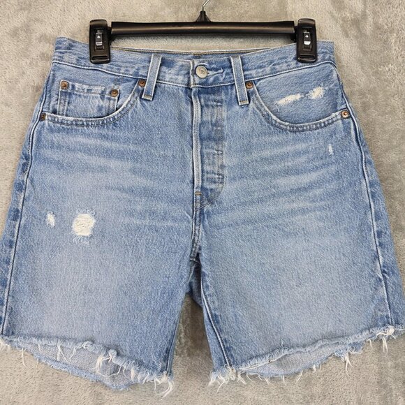 Levis 501 Premium Shorts Womens 27 Blue Denim High Rise Button Fly Distressed