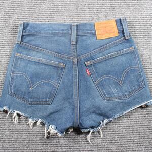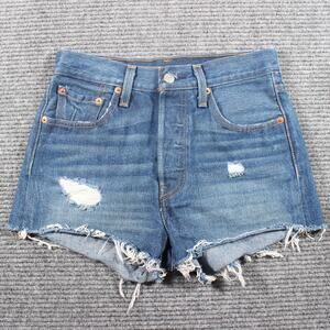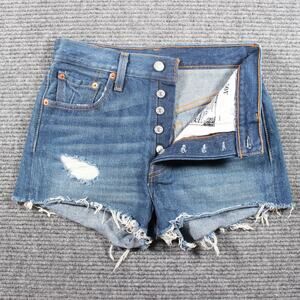 Levi’s 501 Premium Shorts Womens W24 Blue Button Fly Raw Hem Distressed