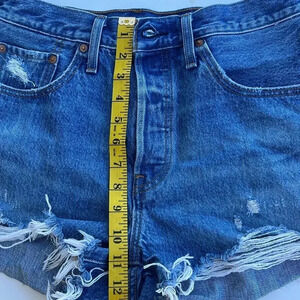 Keywords: Levi's 501, Premium Denim, Women's Jean Shorts, Distressed Denim, Cutoff Shorts, Frayed Hem, High Rise, Button Fly, Vintage Wash, Casual Shorts, Summer Fashion, Festival Wear, Levi's Shorts, W28 Jeans, Iconic Style