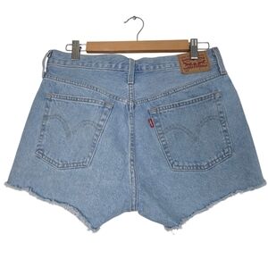Levis 501 Rigid Blue Jean Shorts Buttonfly Raw Hem Casual Wardrobe staple basic