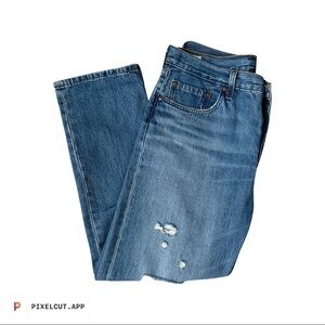 Levi’s 501 Ripped High Waist Crop Straight Leg Jeans Light Blue 31