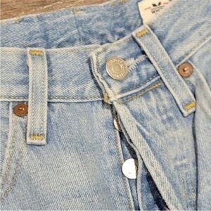 Classic Levi's straight leg jeans. Light blue with distressed details. Perfect for everyday wear.