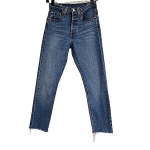 Levis 501 S Premium Jeans Big E Button Fly Blue Wash Cotton Women’s Size 24x24