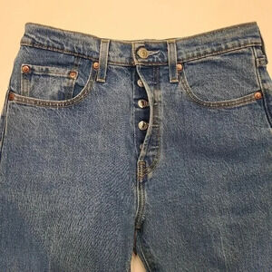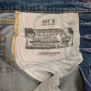 Levi's 501 S Skinny Straight Leg Jeans Blue Denim Button Fly Front 27