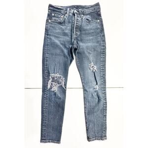Levi's 501 Short Charcoal Black Denim Jeans Straight Leg Ripped Size 24 x 28
