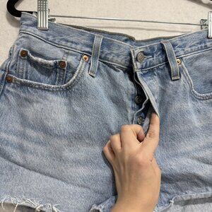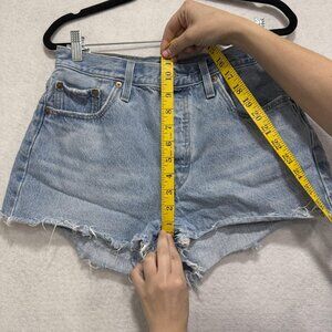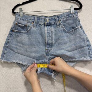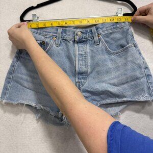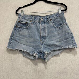 Levis 501 Shorts Womens 29 Blue Denim High Rise Cutoff Distressed Button Fly Vintage Look