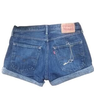 Levis 501 Shorts Womens 32 Blue Cutoff Denim Summer Beach Vacation Sexy Rolled