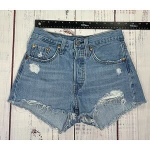 Levi's 501 Cut Off Jean Shorts Women's Size 24 Button Fly Distressed Denim
