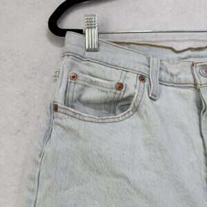 Levis 501 Shorts womens 29 Light Wash Blue Denim Distressed Button Fly Raw Hem