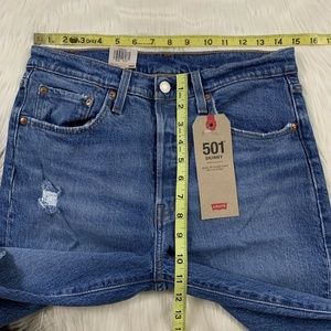 Levi's Women's Size 28 X 28 Medium Wash - Jive Tribe Distress 501 High Rise Skinny Denim Jeans, Stretch, Five Pockets, Button Fly, 99% Cotton 1% Elastane
