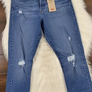 Levi's Women's Size 28 X 28 Medium Wash - Jive Tribe Distress 501 High Rise Skinny Denim Jeans, Stretch, Five Pockets, Button Fly, 99% Cotton 1% Elastane