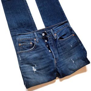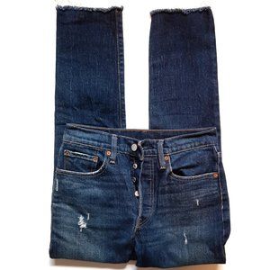 Levi's 501 Skinny Dark Blue Distressed Hem High Rise Jeans SZ 27