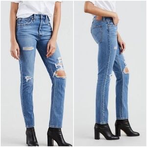 The iconic Levi's 501 has been re-imagined with a slimmer skinny leg and a high-rise. Fits straight through the hip and thigh. Button fly.