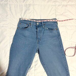 - These Levi's are a Beautiful Baby Blue color, Bluer than most Levi's I've seen - Color in second photo is most accurate.
