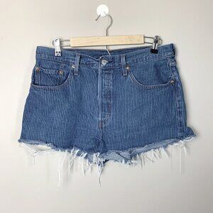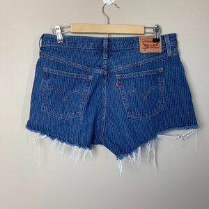 Levi's 501 Striped High Rise Cut Off Denim Button Fly Jean Shorts - Size 32. Medium wash. In excellent condition.