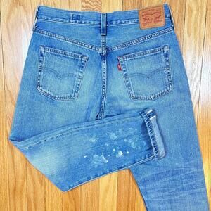 Levis 501 T Jeans Mens 26x28 Selvedge Denim Made in Japan Distressed Faded Paint. Condition is Pre-owned - Good. Shipped with USPS Ground Advantage.