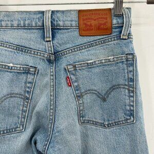 Levi's 501 Tapered High Rise Button Fly Light Wash Retro Raw Hem 24 Cropped Denim Jeans