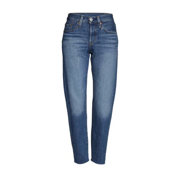 Levi's 501 Tapered Raw Hem Jeans, LEVI'S 501 Jeans With Raw Hem In Sansome Daze Wash, Size 25, High Rise, High Waist, High Waisted, Mid Blue Rinse, 100% Cotton, Rigid Denim, Premium Denim, Mom Jeans, Relaxed Fit, Carrot Leg, Levi's 501s, Frayed Hem