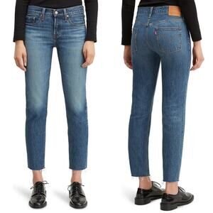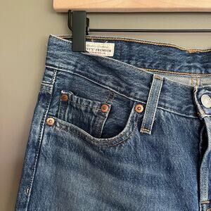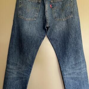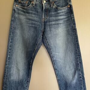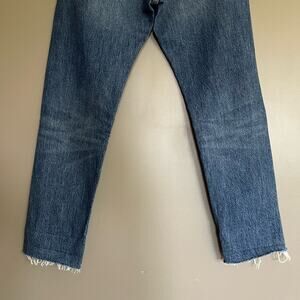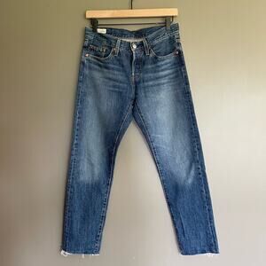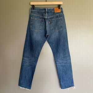 Levi's 501 Tapered Raw Hem Jeans Size 25 High Rise Mid Blue Wash Rigid Denim