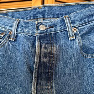 These Levi's 501 jeans embody the enduring legacy of 1990s vintage style. Crafted with durable denim, they feature a timeless straight-leg design and button fly closure. A staple for any denim enthusiast seeking authenticity and heritage.