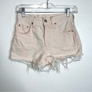 Levi’s 501 Women Size 25 Pale Pink Lemon Tag Button Fly Cut Off Jean Shorts L