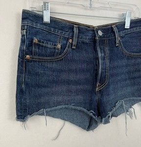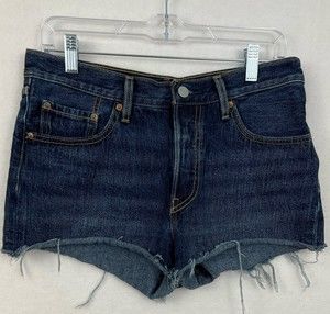 Levis 501 Womens Button-Fly Cut-Off Dark Denim Jean Shorts Size 28 Measured 30