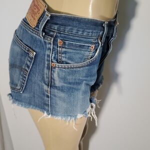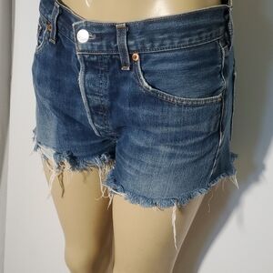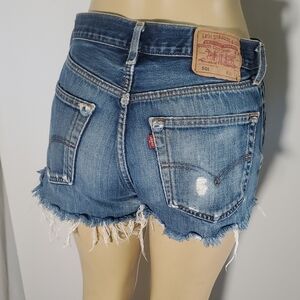 Please see the last photo, it is a little damaged. Levi’s 501 Women's Cutoff Denim Shorts Size 32 Blue Stylish blue denim shorts perfect for casual outings. Features a classic design with a comfortable fit. In great used condition. Please see all photos for details 💥Reasonable offers welcome💥BUNDLE DISCOUNT OF 15% WITH 3 OR MORE ITEMS!!. #