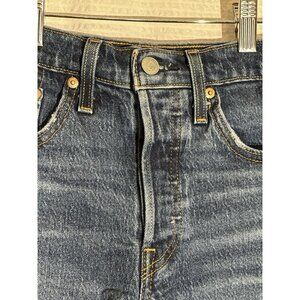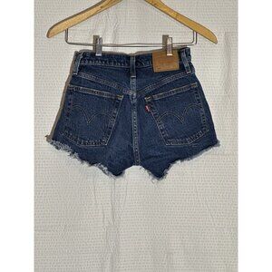 Levi's 501 Women's Denim Jean Shorts Blue Button Fly, Raw Hem, Dark Wash Size 24