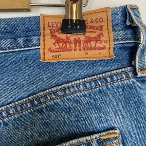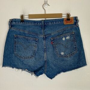 Levi's 501 Women's High Rise Distressed Cutoff Size 34W Cotton Blue Button Fly