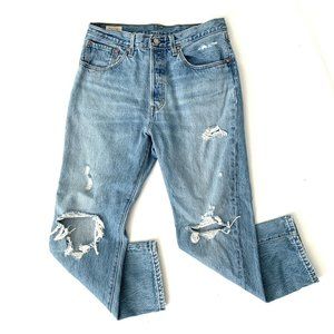 Levi's 501 Womens Jeans 30x26 Distressed Destroyed Blue Denim Button Fly