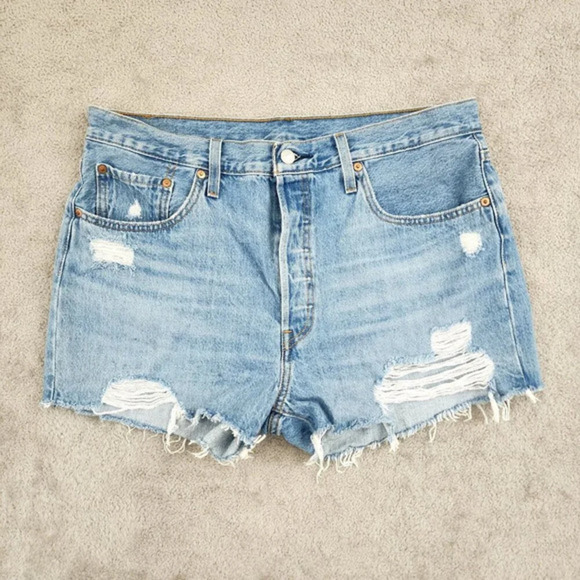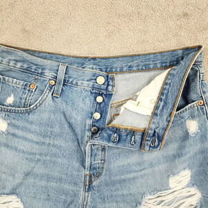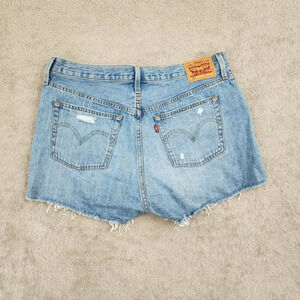 Levi's 501 Womens Light Blue Distressed High Waist Jean Shorts W33 28CT