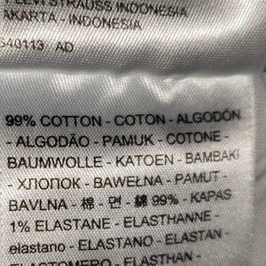 @16johnstonb hi.ijust opened a pair and it does not say composition anywhere. there are like 3-4 tags on the inside but nothing about material composition. however. on levi's website, the materials for every skinny model say 100% cotton, heavyweight denim. that's the best I can tell you.
