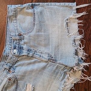 Levi's 501 Women's W32 Light Wash Button Fly Distressed Blue Jean Denim Shorts