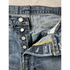 Levis 501 XX Jeans Mens 34x30 Blue Medium Wash Button Fly Straight Fit Cotton. Has holes in the knees. Unsure if it originally came that way.