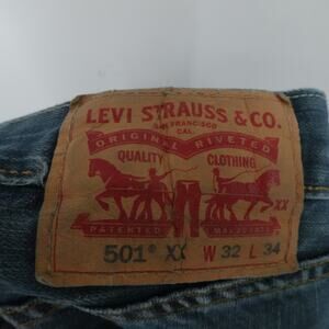 Levis 501 XX Jeans Mens Fits 34x32 BLue Dark Straight Button Fly Classic Work