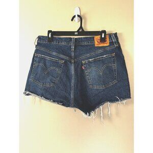 Levi’s 501 women’s shorts in size 31, featuring the iconic button fly, raw hem, and distressed rips for that effortlessly cool Y2K vintage aesthetic. Made from a cotton spandex denim blend that provides both structure and stretch for a flattering fit. Perfect for festival style, casual coastal vibes, or paired with a classic tee for everyday wear. Flat measurements: 16.5" waist, 11.5" rise, 13" length. Made in Cambodia. In gently worn condition with intentional fraying and raw hem details that add to the authentic lived-in look.