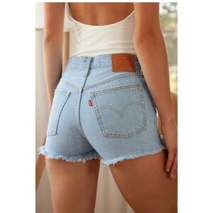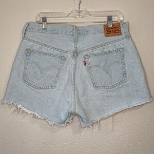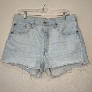 Levi’s 501 button fly cotton denim raw hem shorts high rise 32