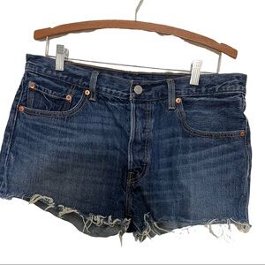 Levi’s 501 button fly jean shorts size 32. Dark wash. Raw hem.