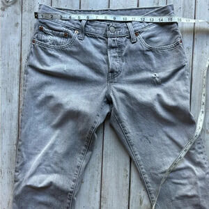 Levi’s, 501 ct, custom taper, gray, slight distressing, size 26