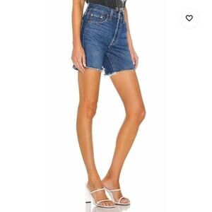 Keywords: denim shorts, high rise shorts, frayed hem, blue shorts, casual shorts, summer shorts, womens shorts, Levis shorts, denim cutoffs, high waisted shorts, trendy shorts, festival shorts