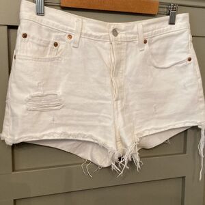 Levi’s 501 high rise denim cutoff shorts white distressed button fly size 29