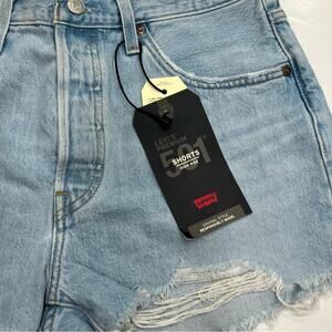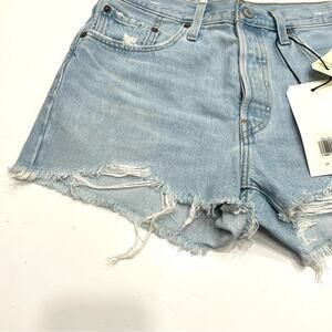 Levis 501 high rise fitted distressed cutoff shorts sz29 NWT Light Wash button fly.