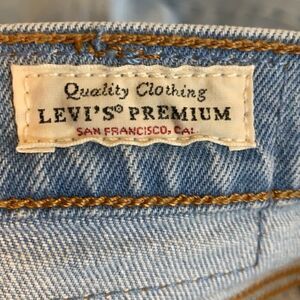 Levi’s 501 high waisted side logo Big E jeans. 99 percent cotton. High rise. Pale wash denim. Button fly. Please view photos for signs of factory fading and distressing.