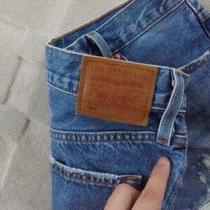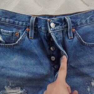 Levi's 501 jean Shorts Womens 28 Button Fly Distressed Blue Rigid Denim